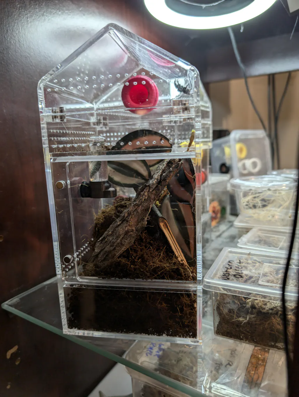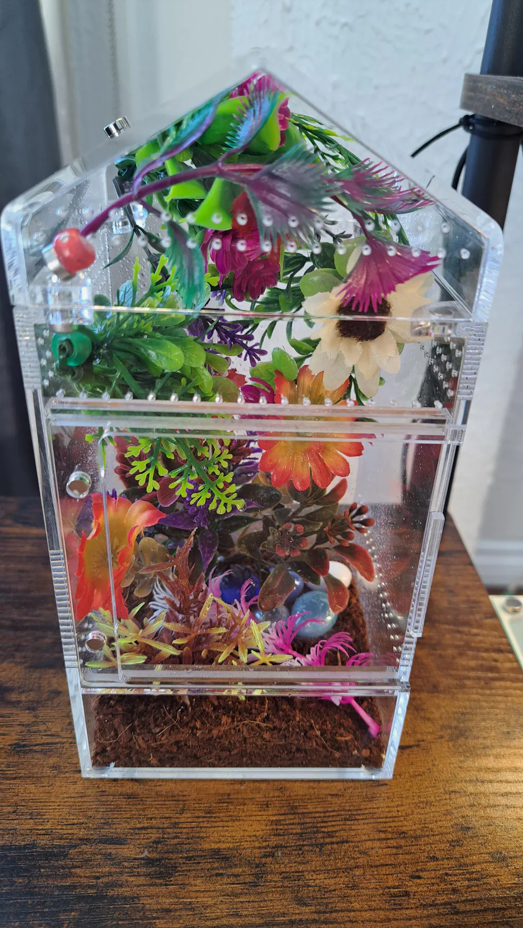 The perfect jumping spider enclosure, removable house shaped top with front door.